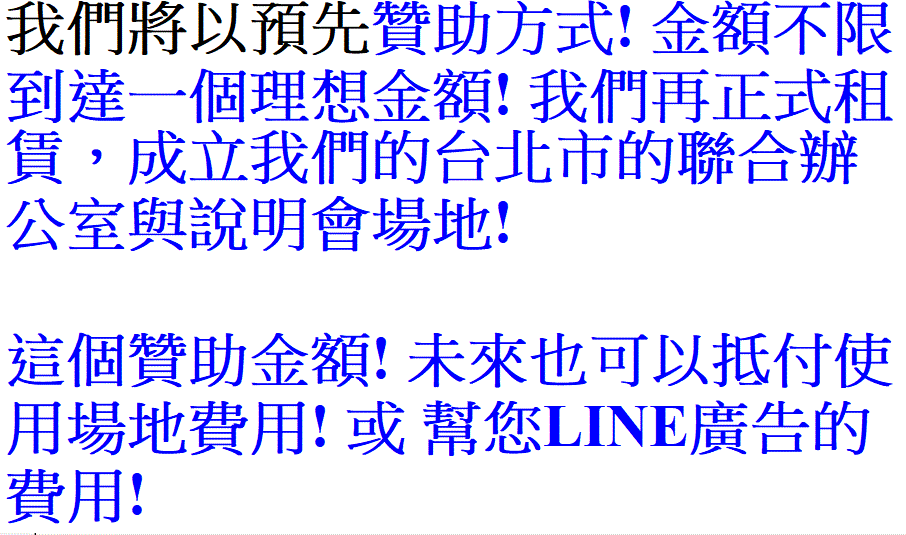 歡迎大家贊助成立台北說明會場地 |